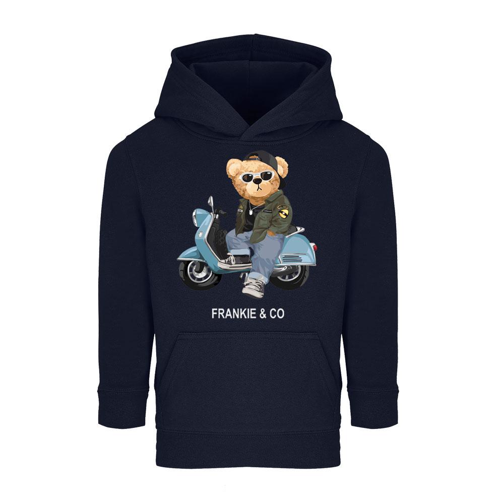▪ Sudadera capucha unisex FRANKIE & CO KIDS vespa bear 80% algodón - 20% poliéster reciclado certificado GRS, felpa perchada, 280 g/m².