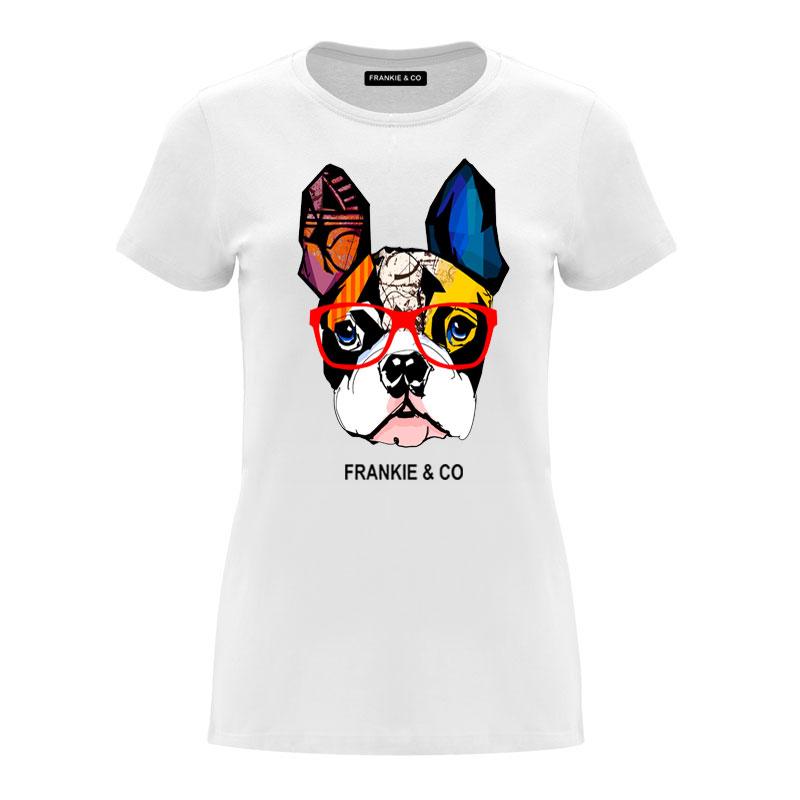▪ Camiseta Frankie & Co de mujer bulldog francés 100% algodón, 170 g/m².